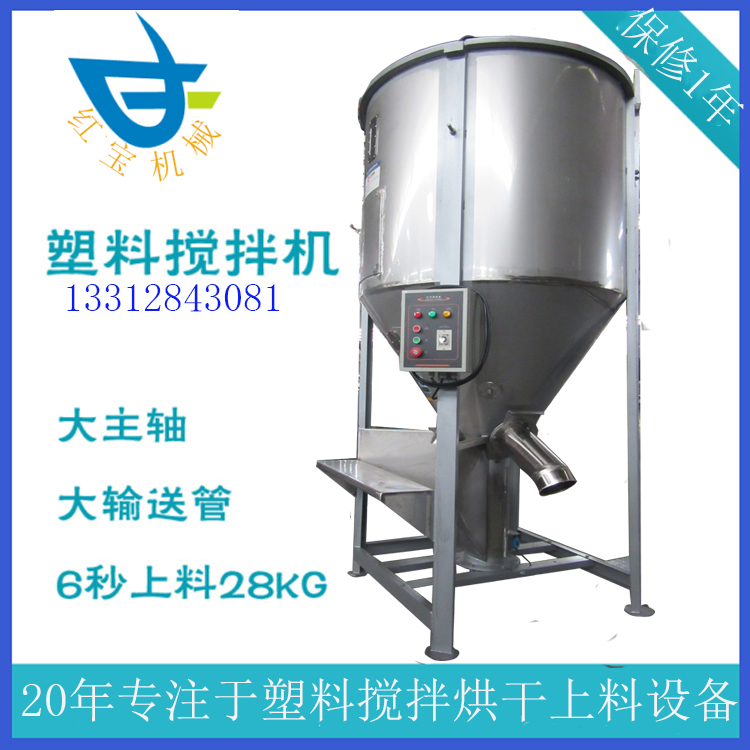 塑料立式安博官网工作原理是:利用螺旋的快速旋转将原料从桶体底部由中心提升到顶端,再以伞状抛撒,回到底部,这样原料再桶内上下翻滚搅拌,短时间内可将大量原料均匀的混合完毕。